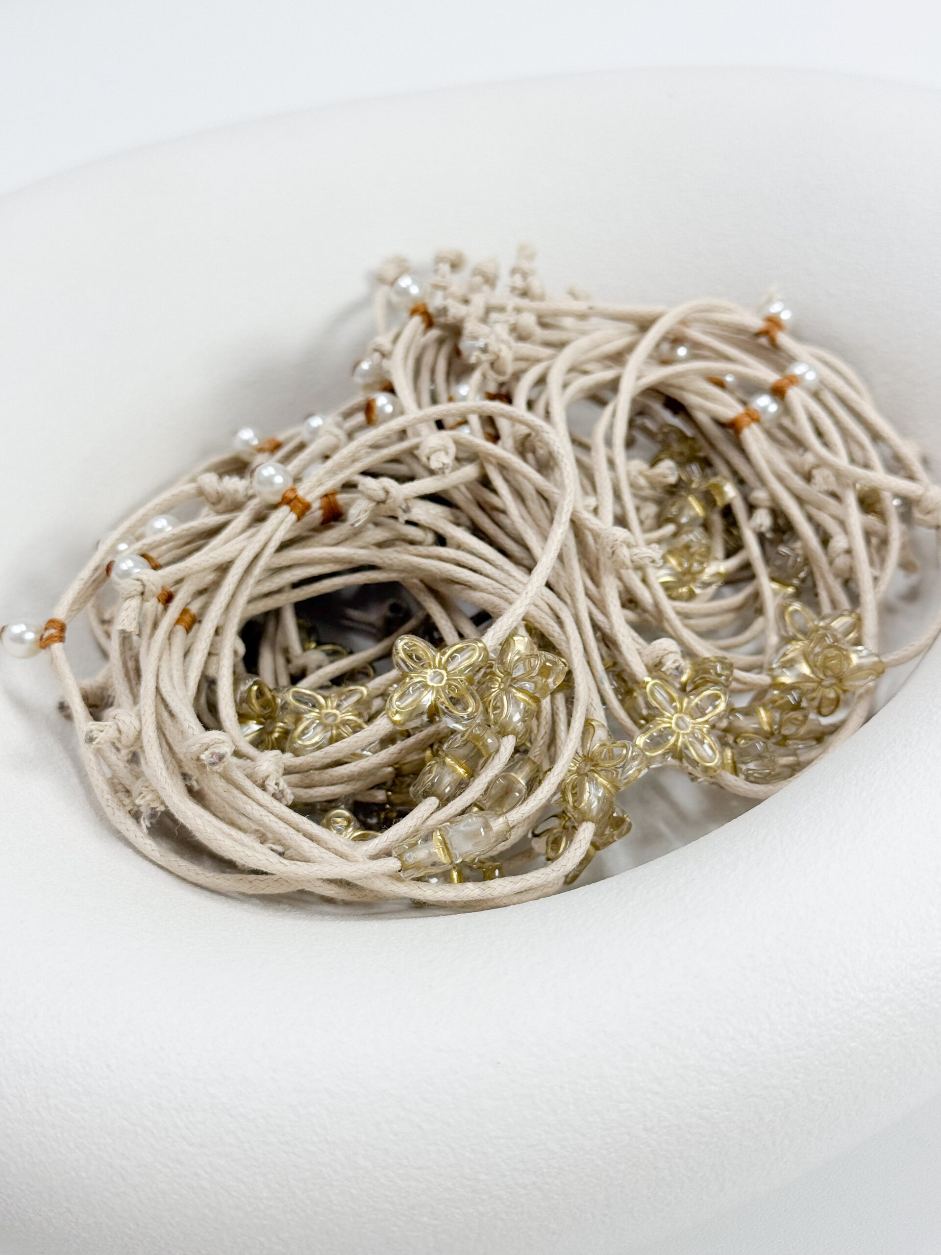 Μαρτυρικό βραχιόλι με ακρυλικό σταυρό σε σχήμα λουλούδι και κερωμένο κορδόνι.