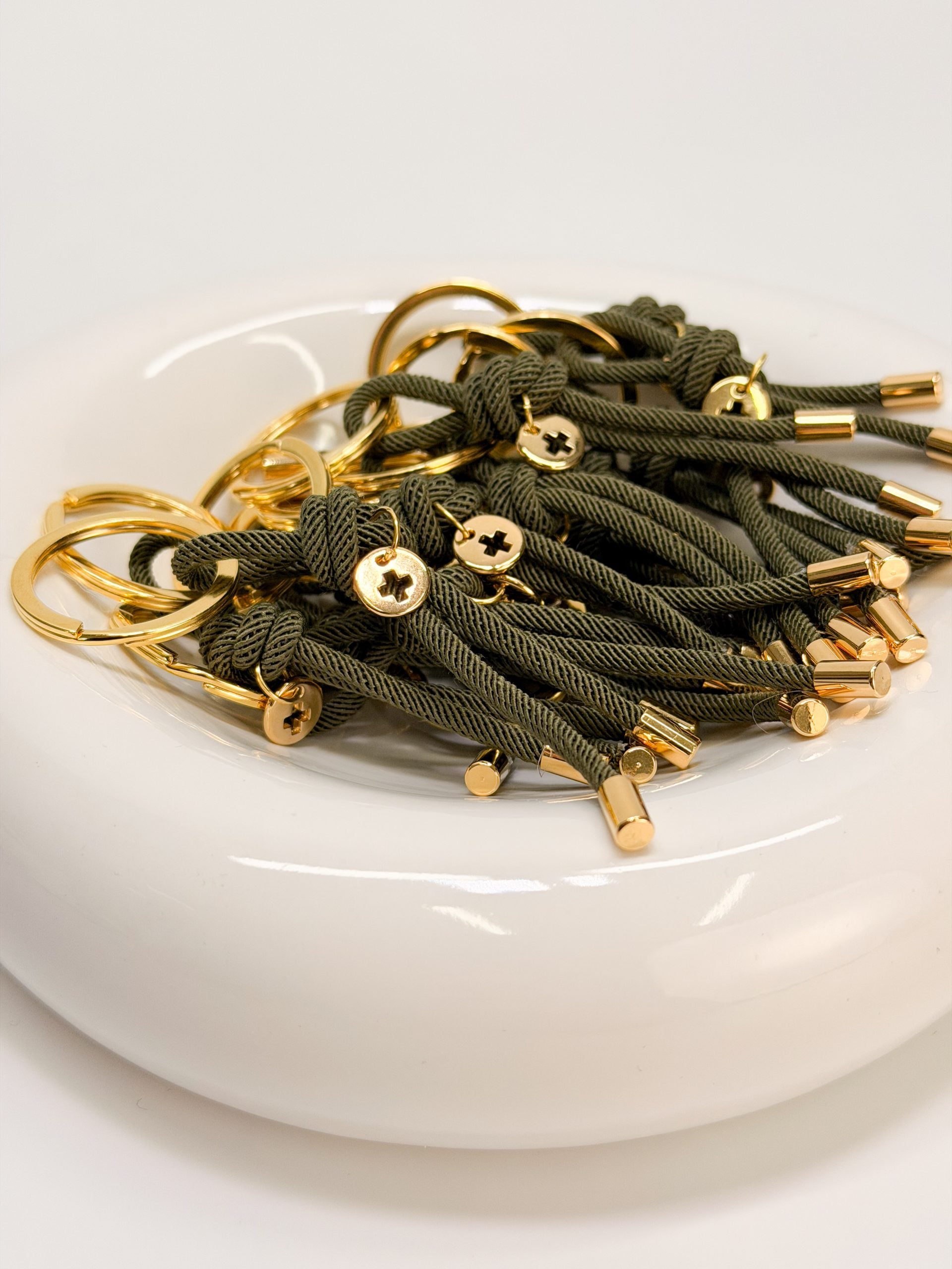 Μαρτυρικό μπρελοκ με χακί κορδόνι,επιχρυσωμένο σταυρό και τάπες.
