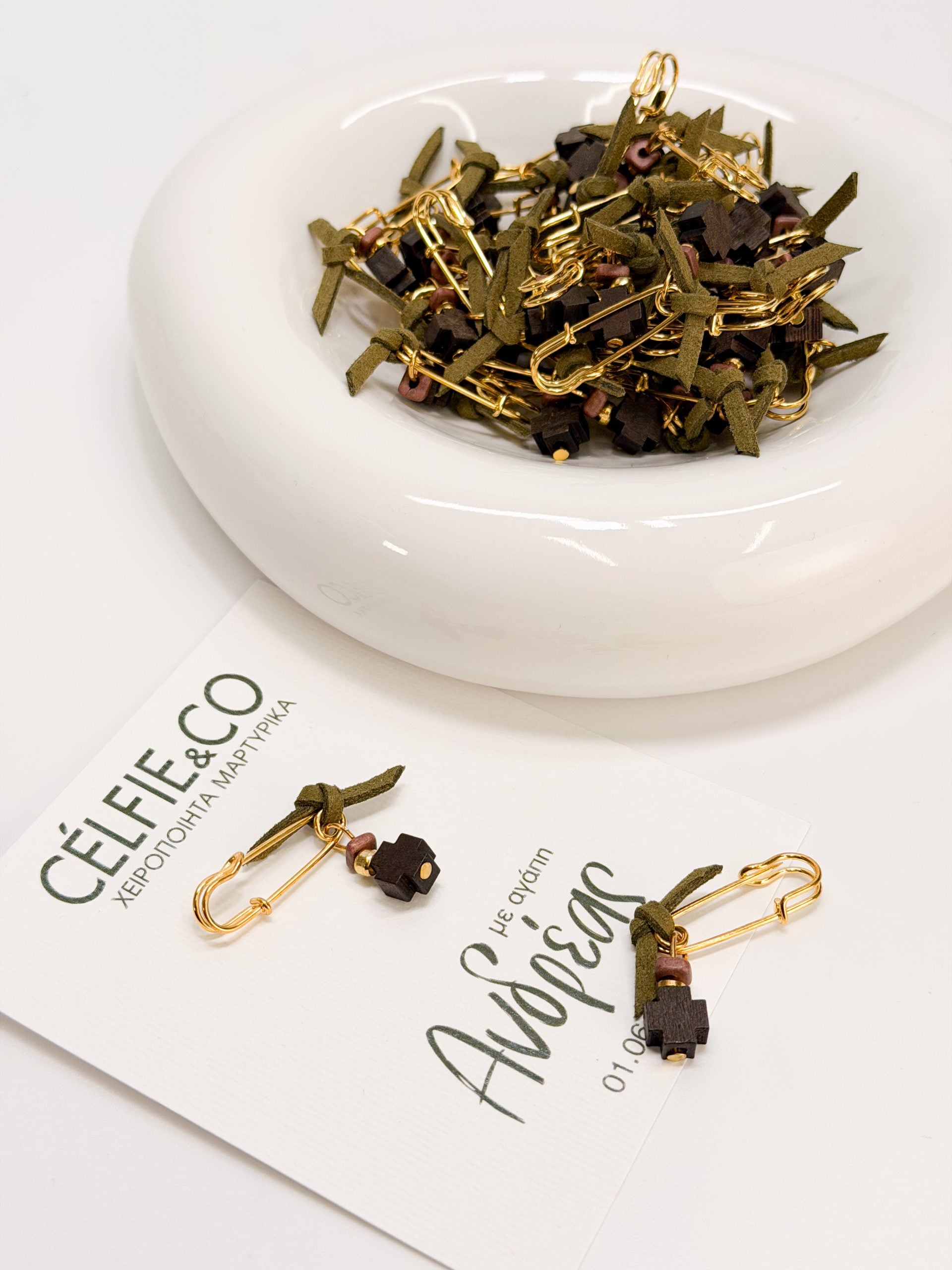 Μαρτυρικό πέτο με χακί σουετ,καφέ ξύλινο σταυρό και κεραμική ροδέλα.