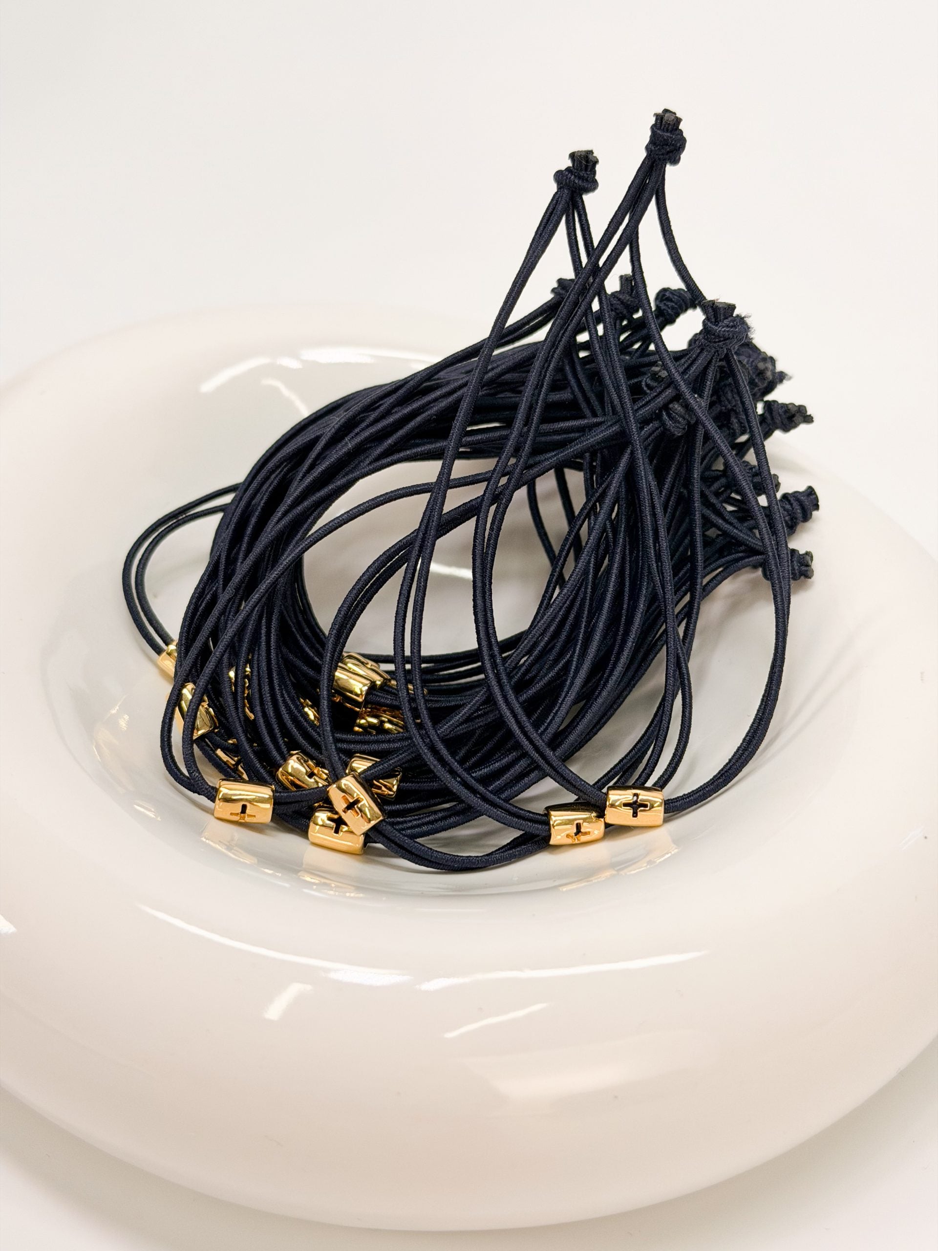 Μαρτυρικό βραχιόλι με ελαστικό μπλε κορδόνι και επιχρυσωμένο σταυρό.