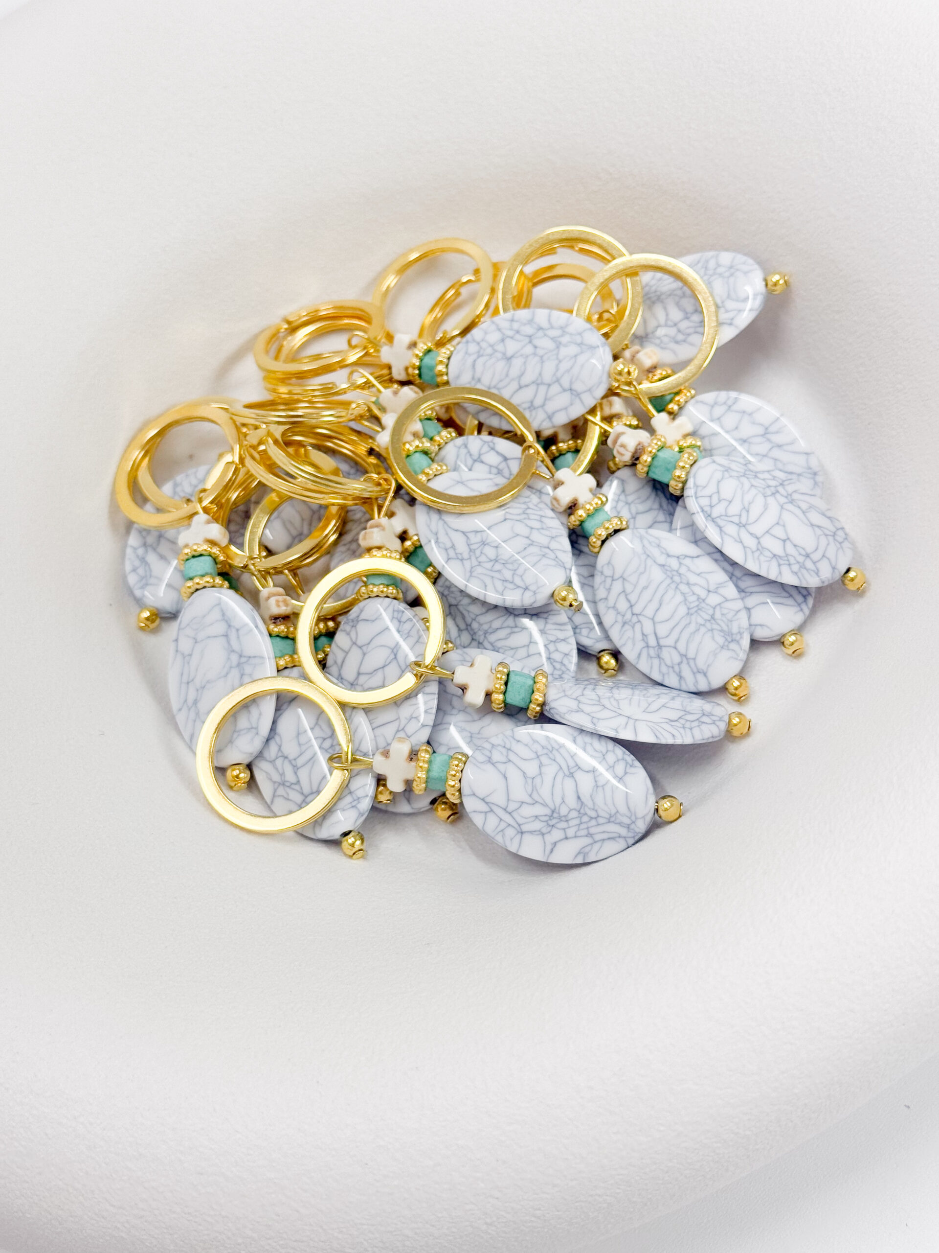 Μαρτυρικό μπρελοκ με χαολίτη σταυρό,κύβο και χάντρα με νερά.