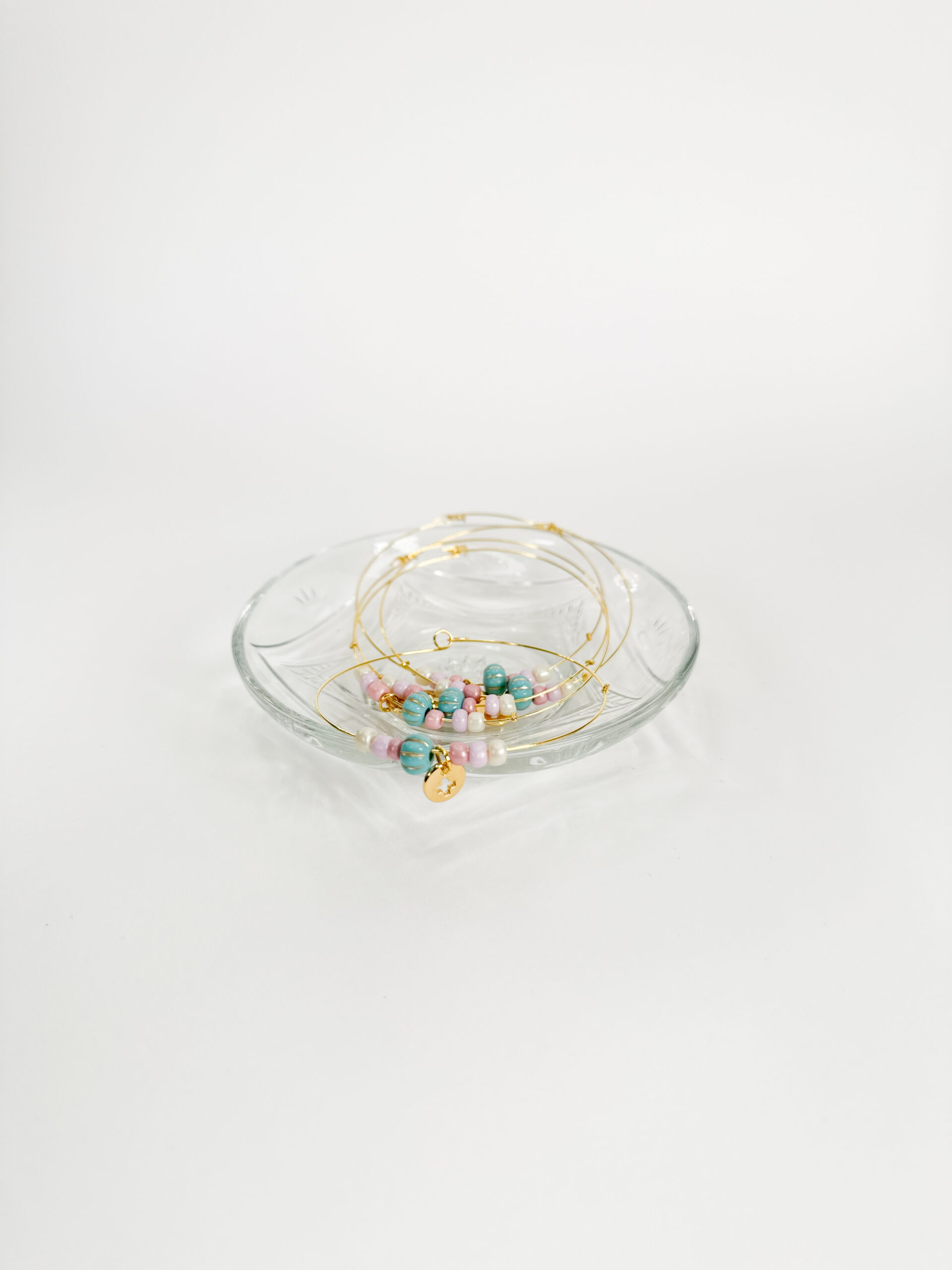 Μαρτυρικό βραχιόλι memory με ροζ,εκρου και λιλα μιγιουκι,τιρκουαζ χάντρα και επιχρυσωμένο σταυρό.
