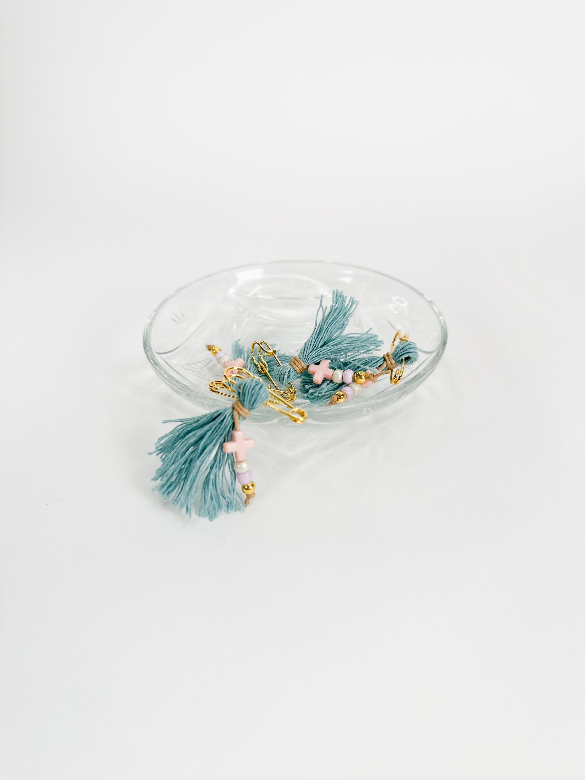 Μαρτυρικό πέτο με μπλε φούντα,πλαστικό σταυρό κσι εκρού|λιλα μιγιουκι.