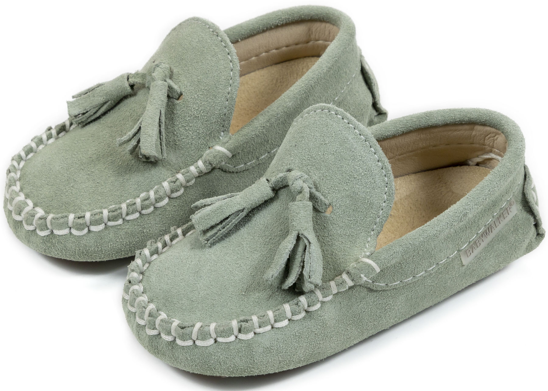 Καστόρινο Μοκασίνι με Φουντάκια από Δέρμα Κρούτα Suede σε Μέντα Χρώμα