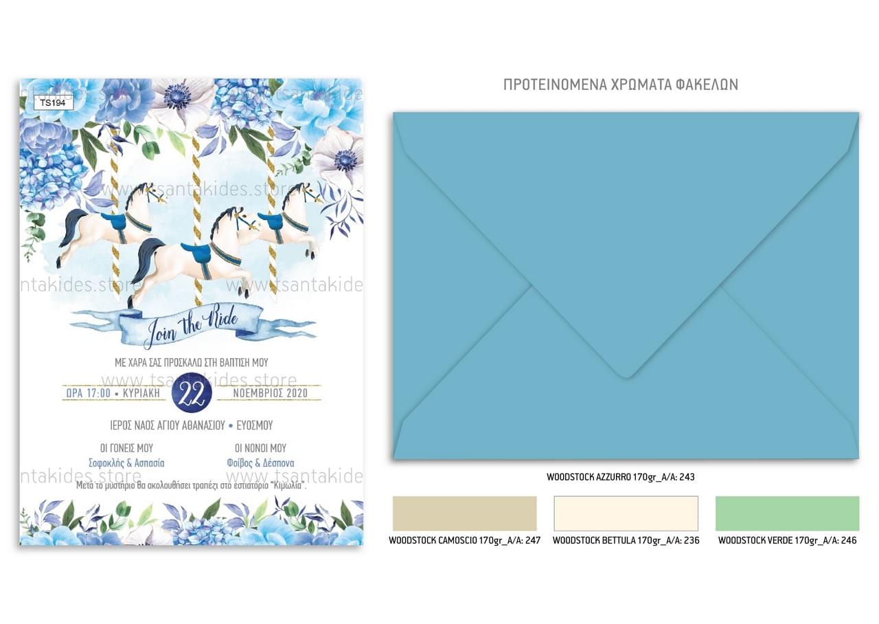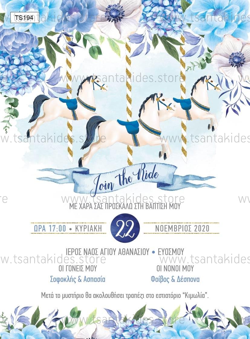 Προσκλητήριο βάπτισης για αγόρι με θέμα carousel TS194