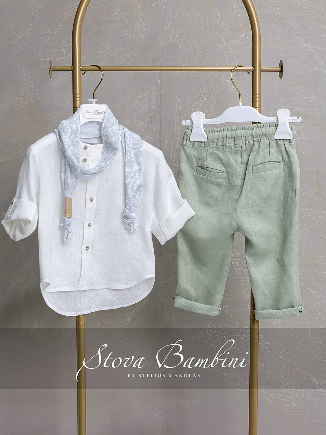 Αέρινο καλοκαιρινό βαπτιστικό σύνολο από 100% υψηλής ποιότητας linen, σχεδιασμένο για κομψές και ανάλαφρες εμφανίσεις τις πιο ζεστές ημέρες του καλοκαιριού. Η λευκή λινή πουκαμίσα Stova συνδυάζεται αρμονικά με το λινό παντελόνι -με κορδόνι περίσφιξης- σε μοναδική απόχρωση μέντας, δημιουργώντας ένα σύνολο που αποπνέει φυσική κομψότητα και διαχρονικό στυλ. Το σύνολο ολοκληρώνεται με υπέροχο Ιταλικό printed φουλάρι και ασορτί καπέλο — για μια ολοκληρωμένη, καλοκαιρινή εμφάνιση που δεν φωνάζει, αλλά ξεχωρίζει.