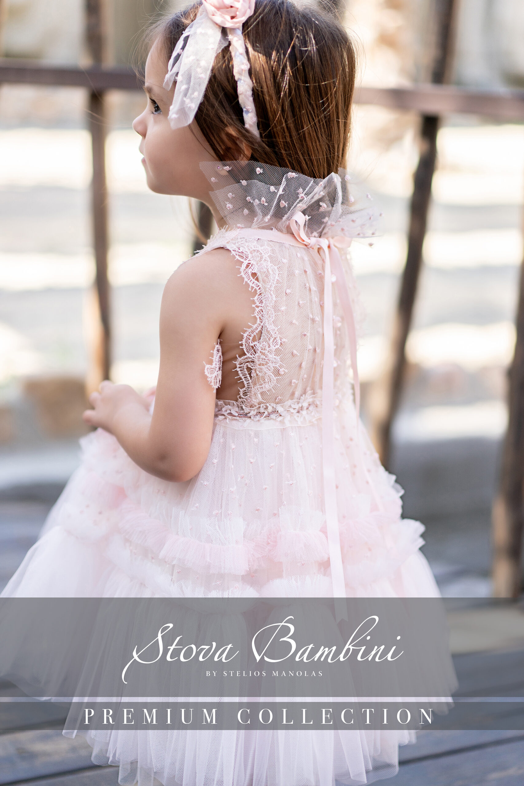 Ρομαντικό βαπτιστικό φόρεμα από φίνο τούλι σε sweet-pink απόχρωση με τούλινο γιακά. Μοναδικό σχέδιο φούστας με βολάν και πολυτελές Plissé Tulle Γαλλίας ολοκληρώνουν το σύνολο. Το σετ ολοκληρώνεται με στέκα για τα μαλλιά διακοσμημένη με χειροποίητα λουλούδια. Όλα τα φορέματα διαθέτουν εσωτερική επένδυση 100% Cotton.