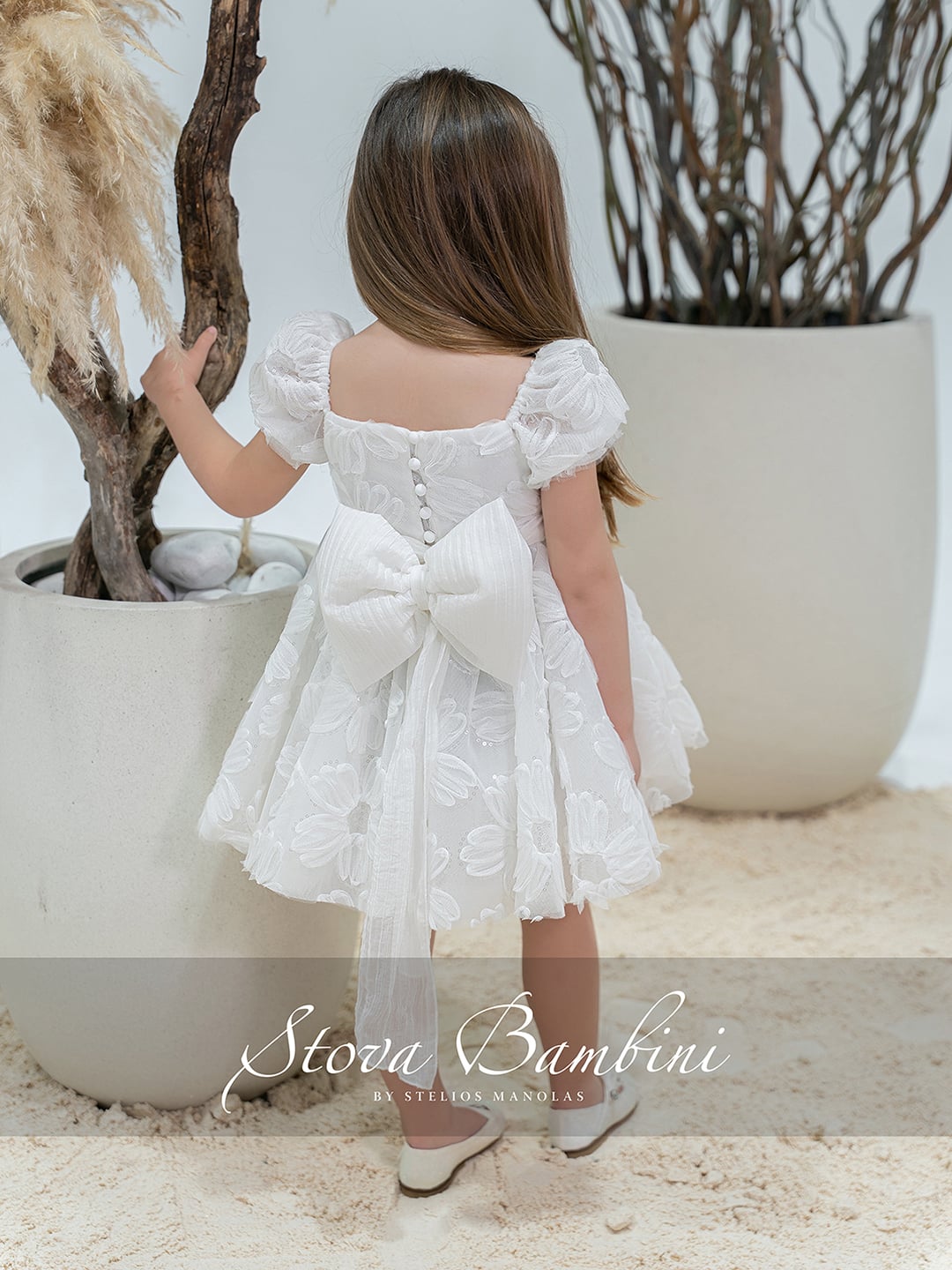 Tο viral φόρεμα της Stova Bambini είναι εδώ! Εντυπωσιακό και άκρως εκλεπτυσμένο φόρεμα σε λευκή απόχρωση, που έχει ήδη ξεχωρίσει για τη φετινή χρονιά. Ένα σχέδιο που συνδυάζει μοναδικά τη σύγχρονη αισθητική με την υψηλή λεπτομέρεια στη ραφή. Το μπούστο διακοσμείται με τρισδιάστατες floral εφαρμογές και διακριτικές παγιέτες, δημιουργώντας ένα αποτέλεσμα γεμάτο υφή και κομψή λάμψη. Τα ιδιαίτερα μανίκια προσθέτουν όγκο και χαρακτήρα, αναδεικνύοντας το ξεχωριστό design του φορέματος. Η φούστα ακολουθεί την ίδια εντυπωσιακή γραμμή, με τα ανάγλυφα floral στοιχεία που χαρίζουν κίνηση και μία πολυτελή αίσθηση σε κάθε βήμα. Η πλάτη ολοκληρώνει το σύνολο με έναν μεγάλο, εντυπωσιακό φιόγκο, που αποτελεί το signature στοιχείο του σχεδίου και προσδίδει μία επιπλέον δόση κομψότητας και μοναδικότητας. Όλα τα φορέματα διαθέτουν εσωτερική επένδυση 100% Cotton για απόλυτη άνεση.