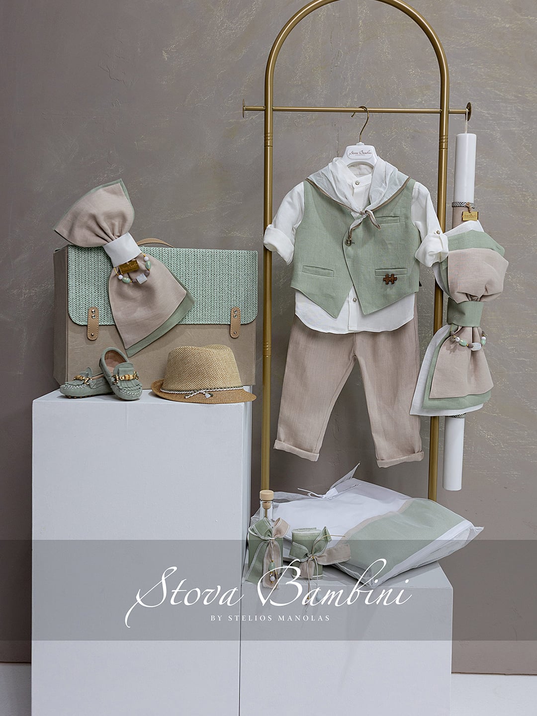 Το σετ περιλαμβάνει όλα τα απαραίτητα για μια ονειρεμένη βάπτιση: λαμπάδα βάπτισης, combo για τη βαλίτσα ή το κουτί σας, λαδόπανα, εσώρουχα, πετσέτες και λαδοσέτ.