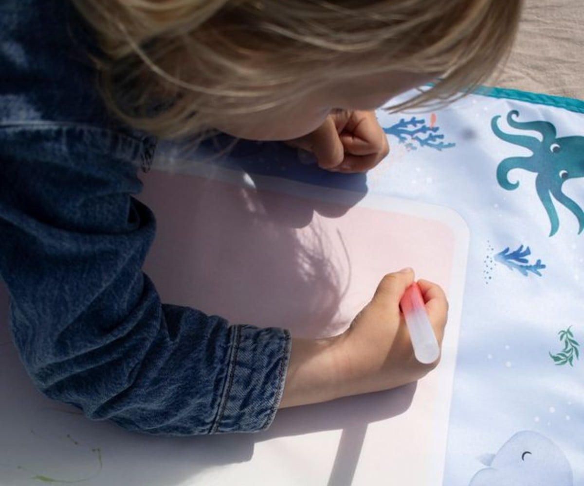 Μια ήσυχη στιγμή, μια απαλή πινελιά νερού — και ξαφνικά τα χρώματα ανθίζουν σαν μαγεία. Σε αυτό το ονειρικό χαλάκι ζωγραφικής με νερό, οι μικροί καλλιτέχνες βλέπουν τη φαντασία τους να ζωντανεύει σε απαλές αποχρώσεις του ουράνιου τόξου, χωρίς λεκέδες και ακαταστασία.