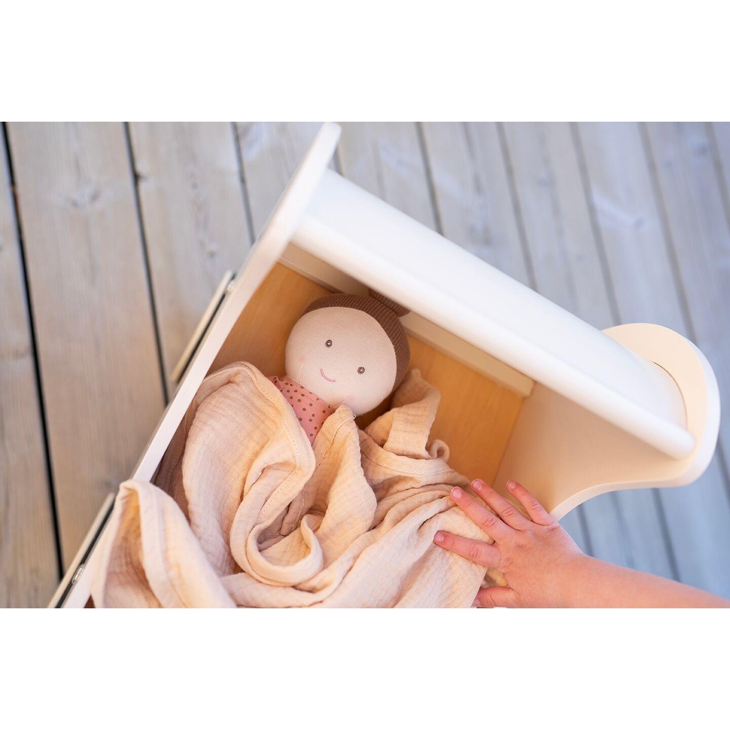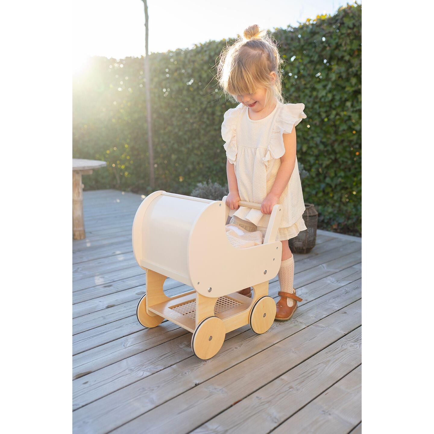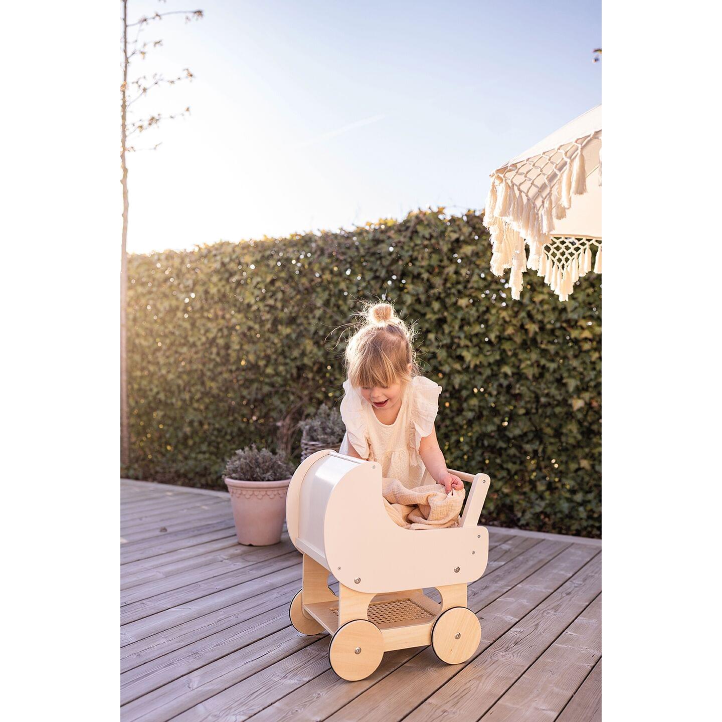 Έχει ένα υπέροχο κρεμ χρώμα με λεπτομέρειες rattan. Στο κάτω μέρος έχει ένα ραφάκι που μπορείτε να αποθηκεύεσετε τα αξεσουάρ της κούλας σας ή τα αγαπημένα σας παιχνίδια.