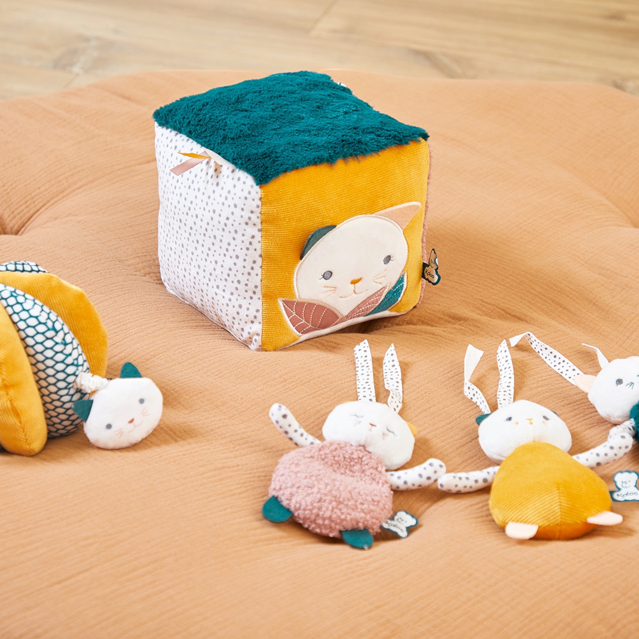 Ο μαλακός κυβός αισθήσεων της Kaloo, σχεδιασμένος σε συνεργασία με ψυχοκινητικούς θεραπευτές, προσφέρει μια διασκεδαστική και τρυφερή εμπειρία που διεγείρει απαλά τις αισθήσεις του μωρού σας. Με ποικιλία υφών, χρωμάτων και διαδραστικών στοιχείων, αυτό το υπέροχο παιχνίδι αναπτύσσει την αφή, την ακοή και την περιέργεια του μωρού σας.