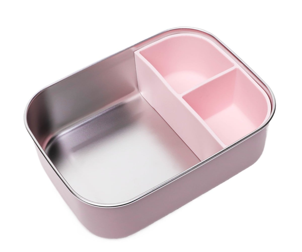Το ελαφρύ κουτί από ανοξείδωτο ατσάλι διαθέτει αφαιρούμενο διαχωριστικό σιλικόνης, κατάλληλο για τρόφιμα, για να μοιράζεστε το γεύμα σας σε πρακτικά διαμερίσματα. Με διαστάσεις 19,7 x 14,2 x 6cm, είναι το τέλειο μέγεθος για τα μικρά χεράκια.