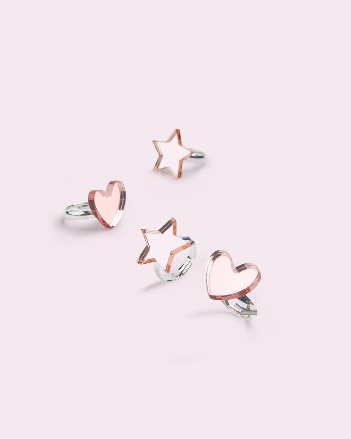 Ροζ χρυσό δαχτυλίδια από ανοξείδωτο ατσάλι με καρδιά και αστέρι, και τα δύο ρυθμιζόμενα για να τα κάνουν πιο φαρδιά ή σφιχτά.