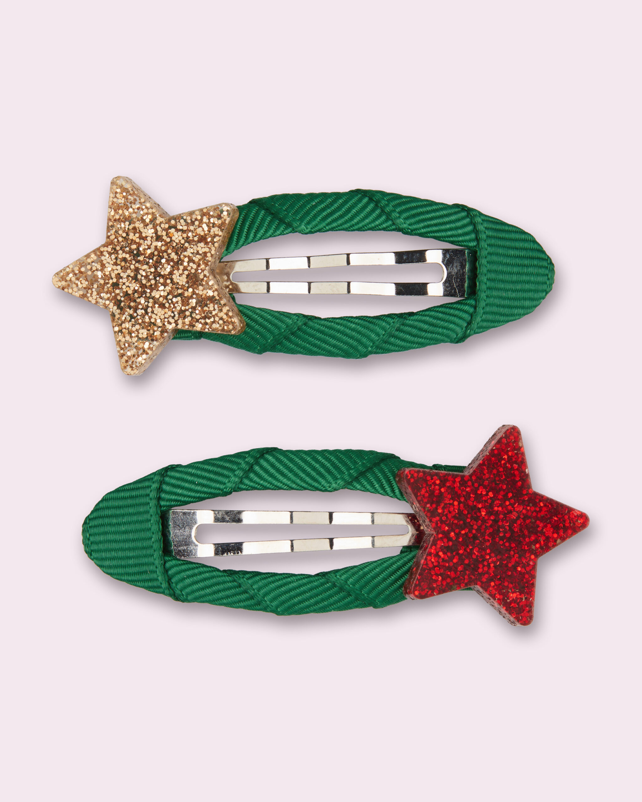 Pearl pink ribbon hairclips with glitter Santa hat and Christmas candy.