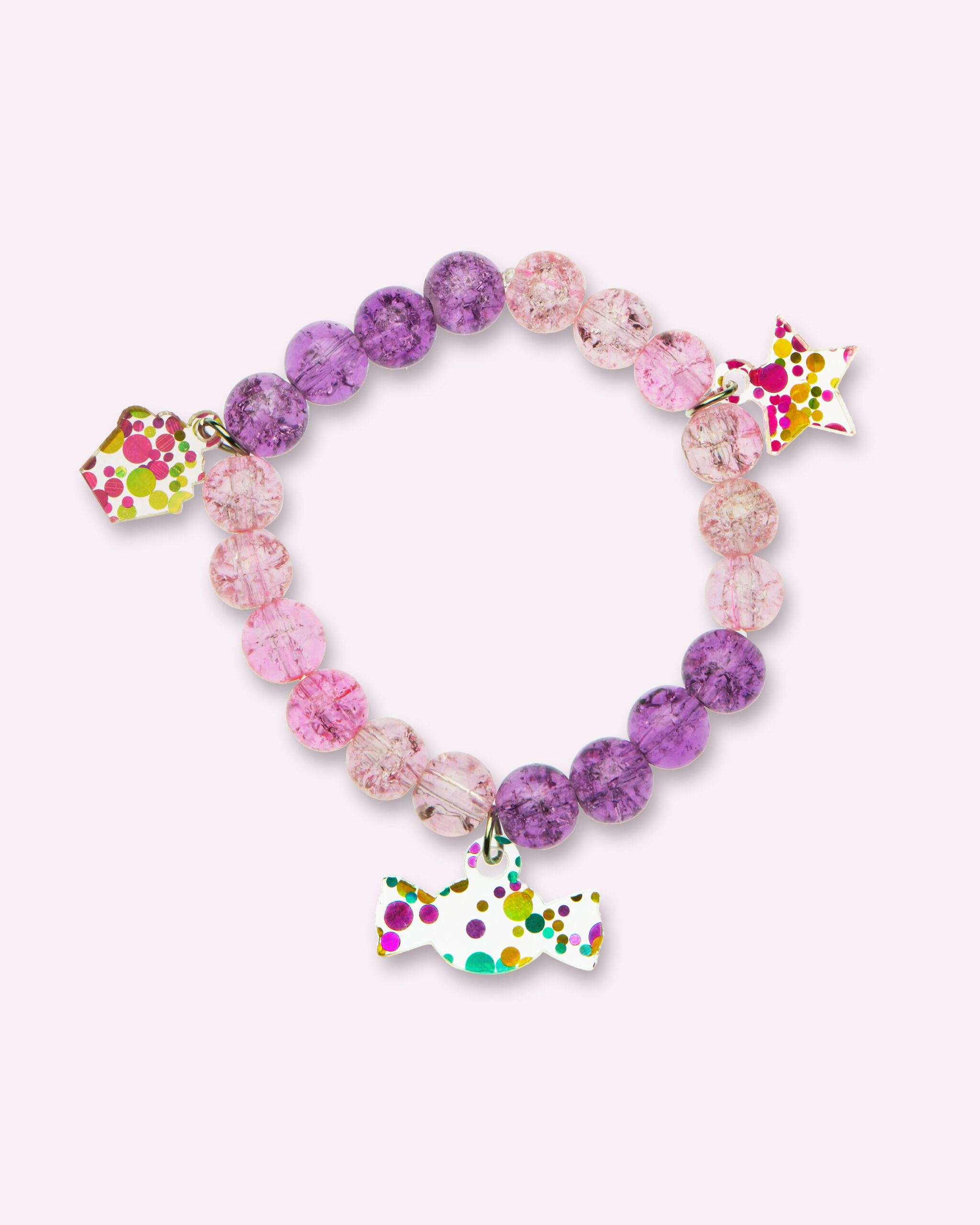 Cupcake, star and candy charms beaded elastic bracelet to fit any wrist, big or small.