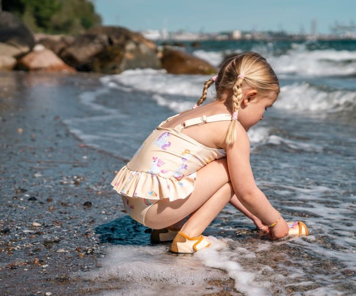 Με ένα χαριτωμένο παιδικό μαγιό, οι ηλιόλουστες μέρες στην πισίνα, στην παραλία ή στον κήπο γίνονται ακόμα πιο μαγικές! Το μαγιό διαθέτει κλασική γραμμή, ρυθμιζόμενες τιράντες και μια μικρή, κομψή φούστα με βολάν, προσφέροντας UV50+ προστασία και άνεση στο απαλό δέρμα του παιδιού.