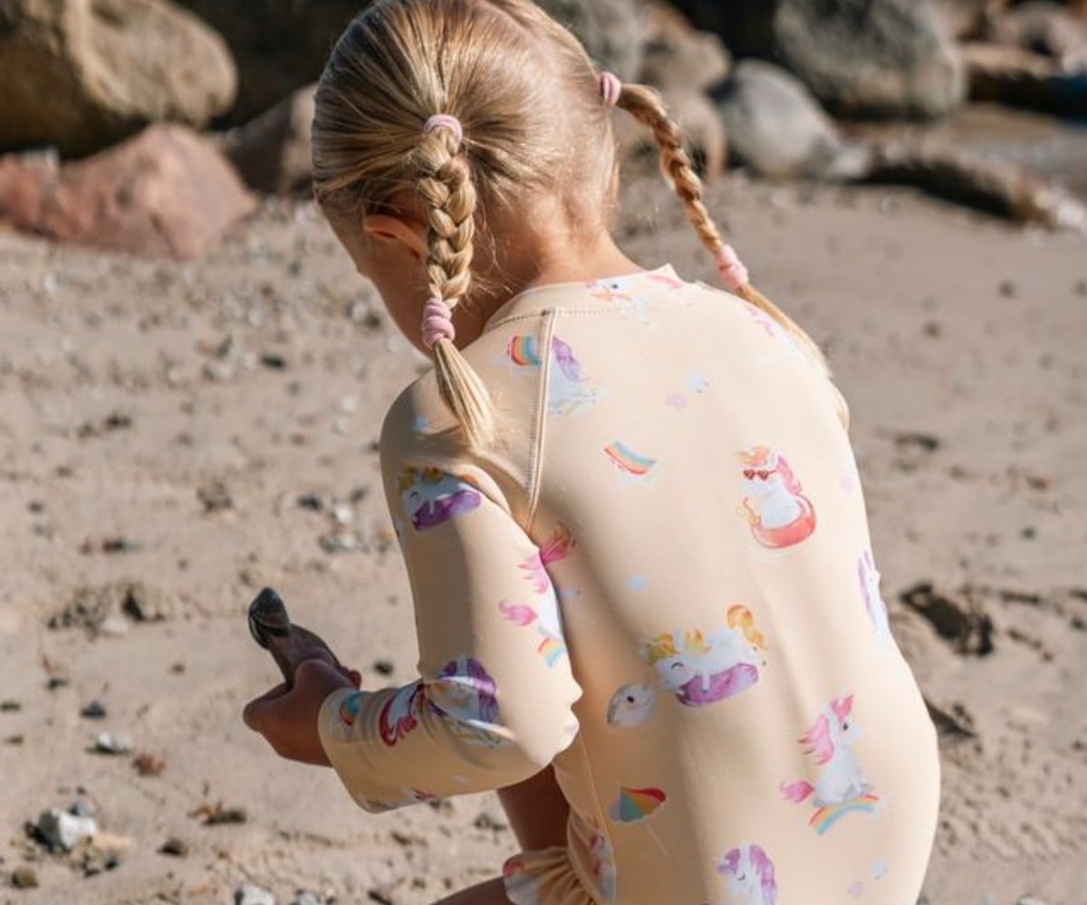 Το μαγιό εντυπωσιάζει παιδιά κάθε ηλικίας χάρη στις φανταστικές, χειροποίητες εικονογραφήσεις του. Ανακαλύψτε αυτό το μαγευτικό καλοκαιρινό σχέδιο εμπνευσμένο από τη θάλασσα. Μαγικά μονόκερα γλιστρούν πάνω σε ουράνια τόξα και παίζουν απαλά στα κύματα, ενώ ένα περίεργο μικρό ναρβάλ ξεπροβάλλει από τη λαμπερή θάλασσα. Πάνω σε ένα απαλό κίτρινο φόντο, αυτός ο ονειρικός κόσμος καλεί τα μικρά παιδιά σε ένα καλοκαίρι γεμάτο φαντασία, χαρά και μαγικές περιπέτειες.