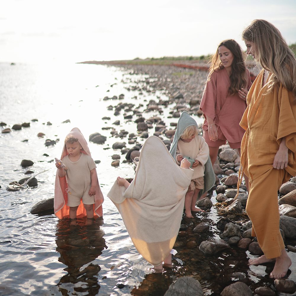 Hooded towel made from 100% organic cotton, perfect for cozy, comforting cuddles after bath time.