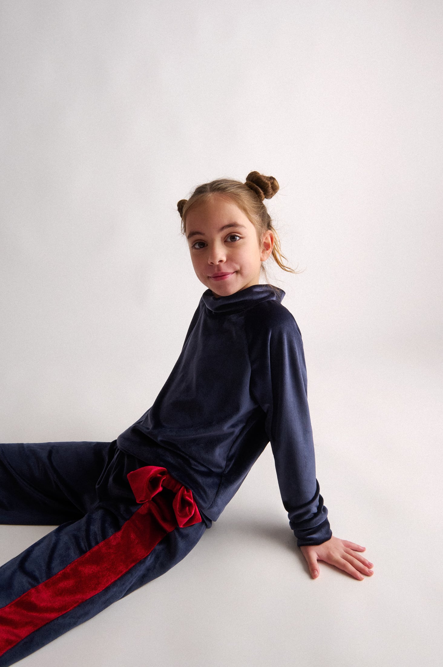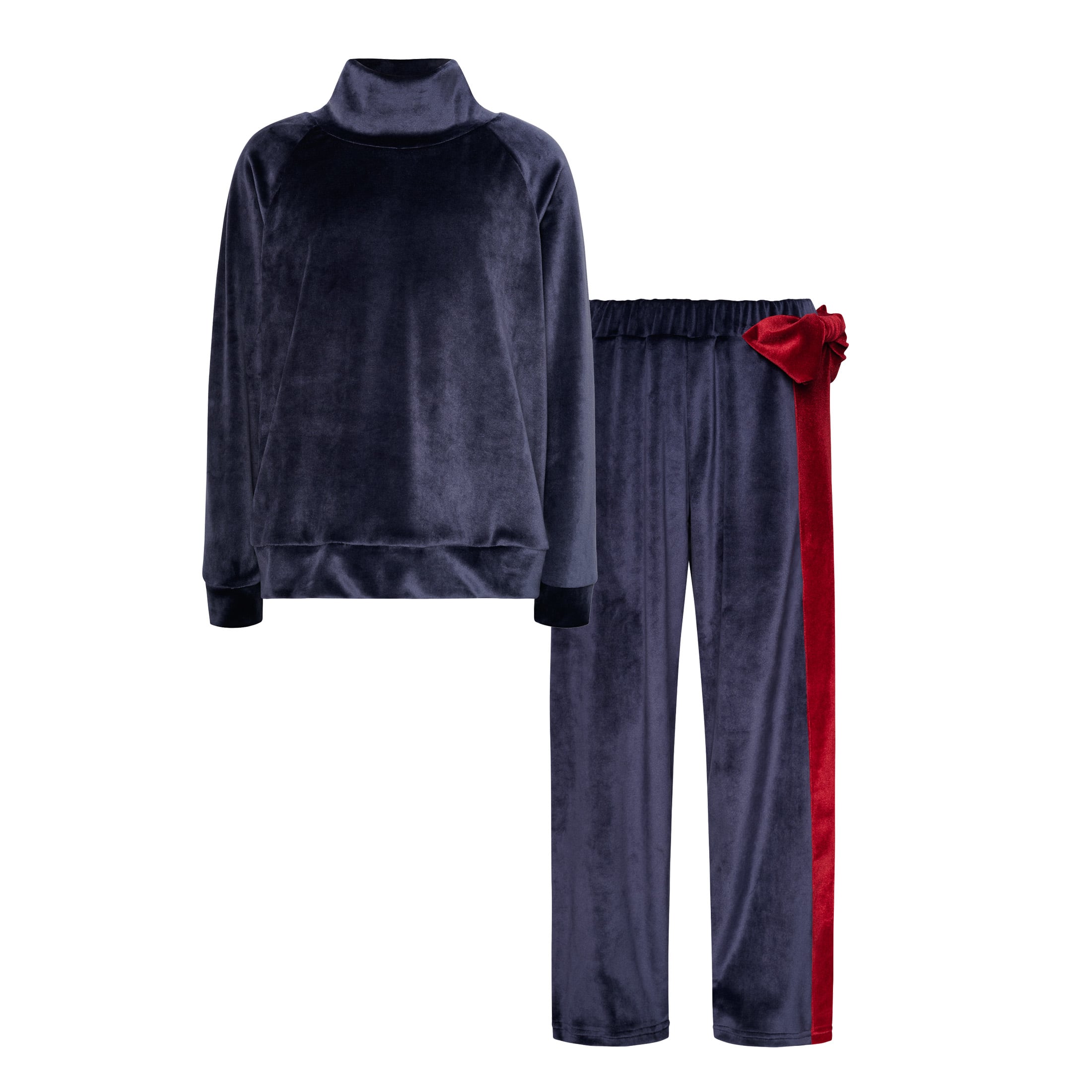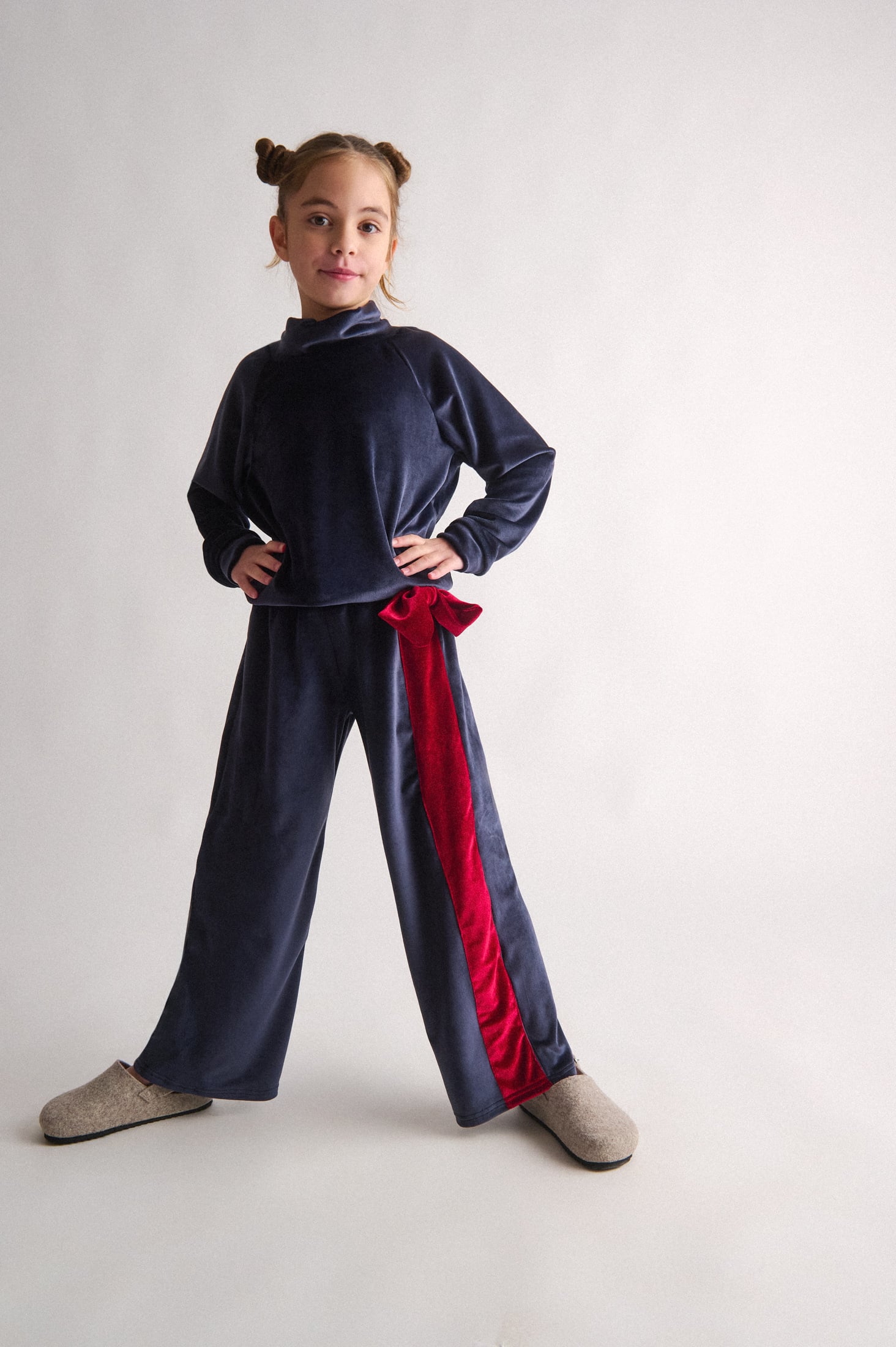 Βελούδινο σετ που αποτελείται από μπλούζα με ζιβάγκο & παντελόνι με φιόγκο & κορδέλα στο πλάι. Δώρο βελούδινη κορδέλα για τα μαλλιά.
