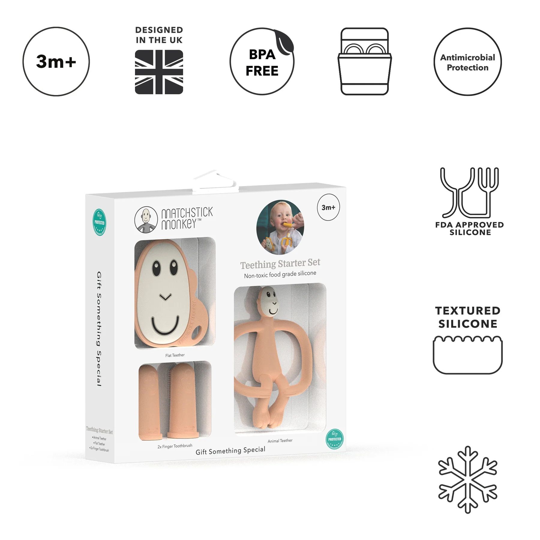 Matchstick Monkey TEETHING STARTER SET – PEACH