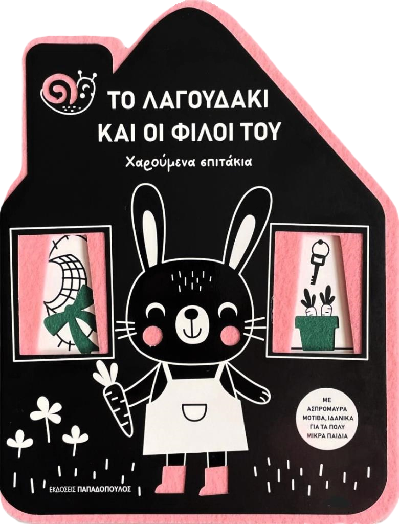 Ένα πολύχρωμο βιβλίο σαν σπιτάκι! Με μαλακά υφασμάτινα σχήματα που δημιουργούν όμορφες αντιθέσεις με τις ασπρόμαυρες εικονογραφήσεις, ιδανικές για τα πρώιμα αναπτυξιακά στάδια των πολύ μικρών παιδιών.