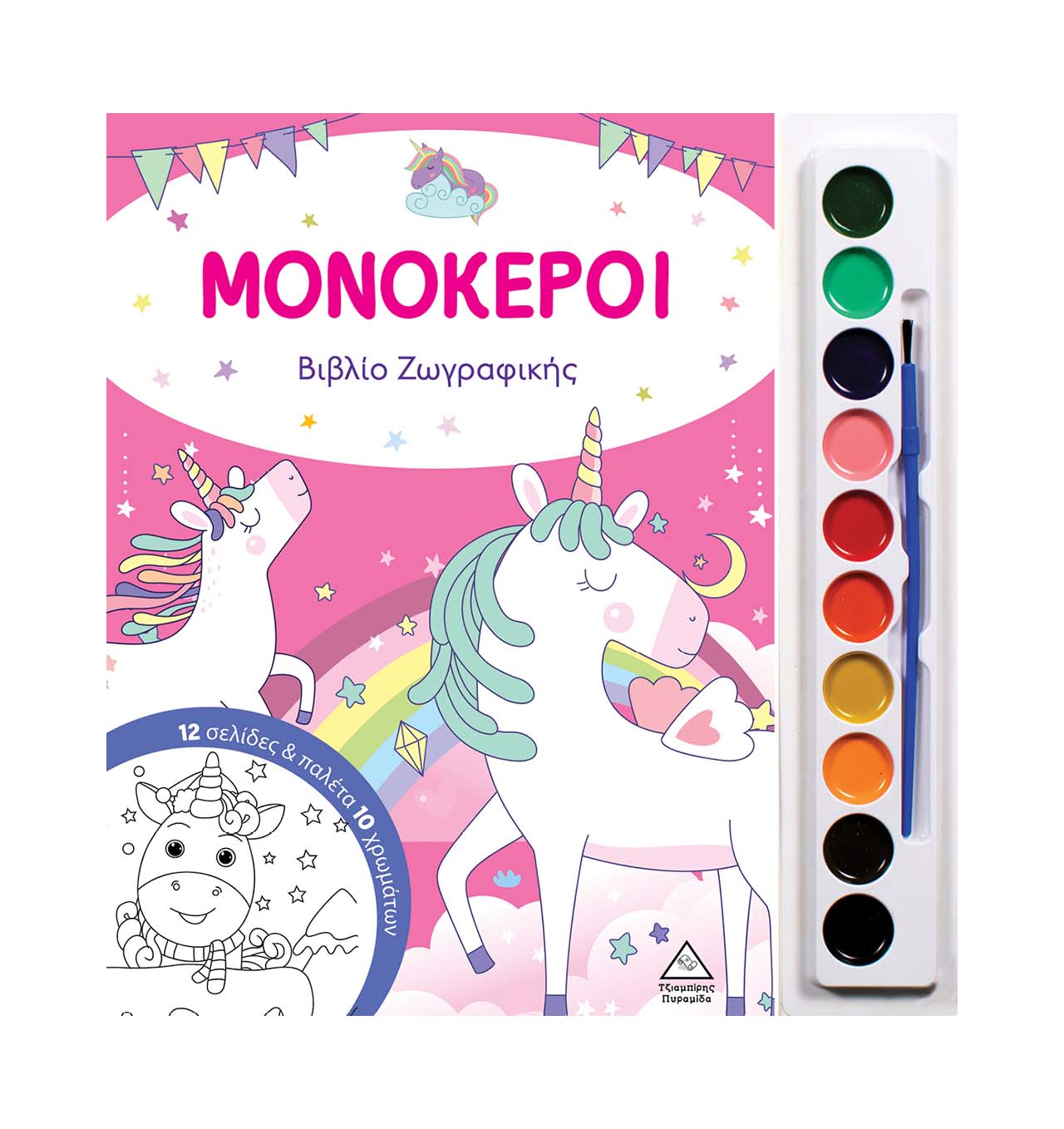 Μονόκεροι Βιβλίο ζωγραφικής με παλέτα 10 χρωμάτων