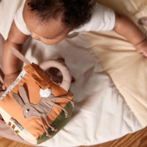 Κατασκευασμένη από απαλό, αγκαλιάστικο υλικό, η καμηλοπάρδαλη είναι ευχάριστη στο δέρμα του μωρού.