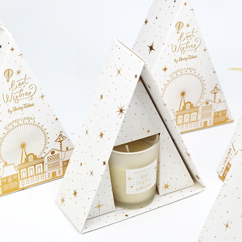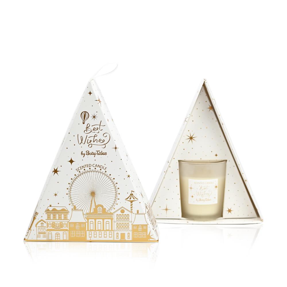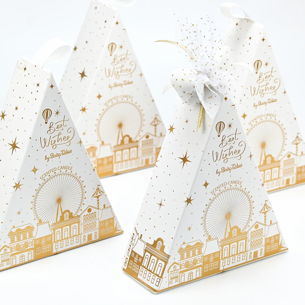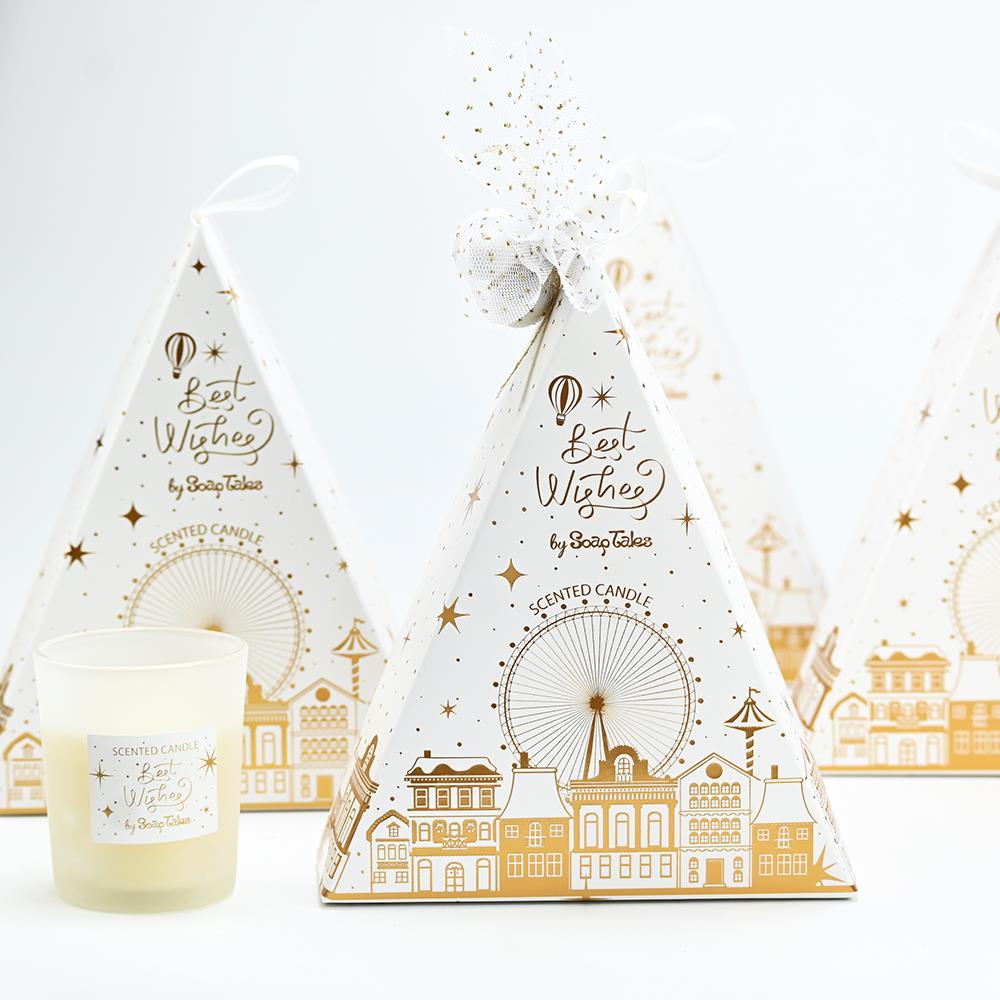 Κερί χριστουγεννιάτικο τριγωνικό λευκό χρυσό 60gr